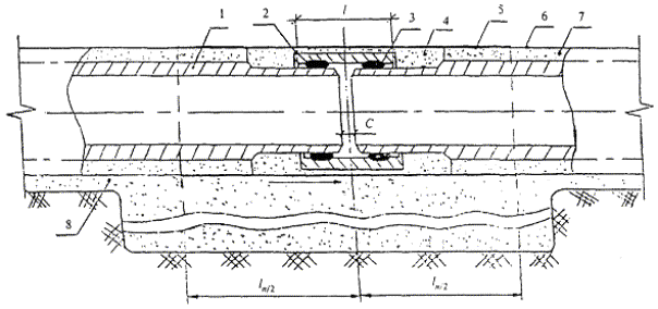 4.9 Теплоизолированные асбестоцементные трубы и стальные фасонные изделия при условиях хранения более двух недель должны быть защищены от воздействия прямых солнечных лучей (в тени, под навесом или прикрыты рулонным материалом). 4.10 Не допускается складирование и хранение продукции в местах, подверженных затоплению водой. 5 МОНТАЖ ТЕПЛОВЫХ СЕТЕЙ5.1 Организационно-техническая подготовка к строительству тепловых сетей из асбестоцементных труб должна осуществляться в соответствии со СНиП 3.01.01, СНиП 3.05.03 и общими требованиями СП 41-105. 5.2 К сооружению тепловых сетей следует приступать только после согласования и утверждения в установленном порядке всей технической документации. 5.3 Строительно-монтажная организация в соответствии с действующим законодательством должна гарантировать соответствие качества выполненных ею тепловых сетей бесканальной прокладки из изолированных асбестоцементных труб, включая работы по изоляции стыков и установке системы ОДК требованиям проектной и нормативной документации в течение 5 лет с момента сдачи указанных сетей в эксплуатацию. Договором строительного подряда гарантийный срок может быть увеличен. 5.4 Трубы, муфты, арматура и готовые узлы перед монтажом должны быть осмотрены и очищены изнутри и снаружи от грязи, снега, льда, масел и посторонних предметов. 5.5 Концы труб и муфт, а также отверстия во фланцах запорной и другой арматуры при перерывах в укладке следует закрывать заглушками или деревянными пробками. 5.6 Резиновые уплотнительные кольца для монтажа трубопроводов в условиях низких температур наружного воздуха не допускается применять в промороженном состоянии. При отрицательных температурах воздуха кольца следует прогревать в горячей воде (50 - 60 °С). 5.7 На углах поворотов и в местах ответвлений, выполненных при помощи стальных отводов, необходимо предусматривать упоры (приложение Г). При сооружении упора опорная стенка котлована должна быть с ненарушенной структурой грунта. Зазор между трубопроводом и сборной частью бетонных или кирпичных упоров должен быть плотно заполнен бетонной смесью или цементным раствором. 5.8 При разбивке трассы тепловых сетей следует руководствоваться законодательством Российской Федерации об охране окружающей среды. 5.9 Строительство тепловых сетей включает следующие основные процессы: - разбивку трассы; - транспортировку теплоизолированных труб и фасонных изделий заводского изготовления, хранение; - земляные работы; - раскладку труб; - проверку целостности проводников-индикаторов системы ОДК; - соединения труб; - устройство неподвижных опор и упоров; - монтаж теплоизолированных труб и их элементов; - теплоизоляцию и гидроизоляцию стыков; - монтаж сигнальной системы ОДК; - проверку системы ОДК. 5.10 Разбивку трассы тепловых сетей следует производить в соответствии с проектом организации строительства (ПОС) и проектом производств работ (ППР), которые должны быть согласованы с эксплуатирующими организациями. Земляные работы 5.11 Разработку траншей и котлованов и работы для устройства основания для бесканальной прокладки трубопроводов в ППУ изоляции следует производить в соответствии с требованиями СНиП 3.02.01 и СНиП III-42. 5.12 При бесканальной прокладке дополнительно должно быть выполнено следующее: - рытье траншеи производится с недобором по глубине 0,1 