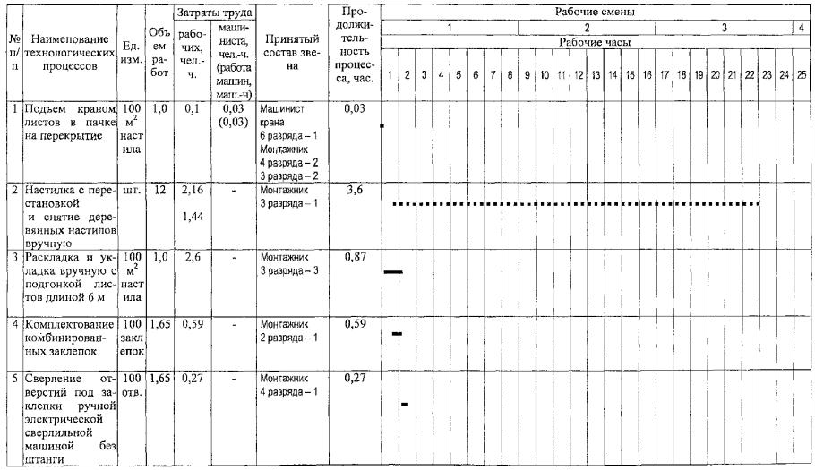 6.2 Календарный график производства работ представлен в таблице 12. 6.3 На основании таблиц 11 и 12 определены основные технико-экономические показатели на измеритель конечной продукции: Продолжительность работ на 100 м2, часы 24 Количество работающих в смену в максимальный период, чел. 9 Затраты труда, чел.-ч - на измеритель конечной продукции (на 100 м2) 90,39 - на 1 м2 перекрытия 0,9 Работа машин, маш.-ч 3,07 Выработка на 1 рабочего в смену, 1 м2 перекрытия 3,7 7. Перечень использованной нормативно-технической литературы1 СНиП 3.01.01-85*. Организация строительного производства. Издание 1995 г. 2 СНиП 3.03.01-87. Несущие и ограждающие конструкции. 3 СНиП 12-03-2001. Безопасность труда в строительстве. Часть 1. Общие требования. 4 СНиП 12-04-2002. Безопасность труда в строительстве. Часть 2. Строительное производство. 5 ГОСТ 12.0.004-90. ССБТ. Организация обучения безопасности труда. Общие положения. 6 ГОСТ 12.1.004-91*. ССБТ. Пожарная безопасность. Общие требования. 7 ГОСТ 12.1.046-85. ССБТ. Строительство. Нормы освещения строительных площадок. 8 ГОСТ 12.3.002-86*. ССБТ. Работы электросварочные. Требования безопасности. 9 ГОСТ Р 12.4.026-2001. Цвета сигнальные, знаки безопасности и разметка сигнальная. 10 ГОСТ 7566-94. Металлопродукция. Приемка, маркировка, упаковка, транспортирование и хранение. 11 ГОСТ 24045-94. Профили стальные листовые гнутые с трапециевидными гофрами для строительства. Технические условия. 12 ГОСТ 26633-91. Бетоны тяжелые и мелкозернистые. Технические условия. 13 ГОСТ 14098-91. Соединения сварные арматуры и закладных изделий железобетонных конструкций. Типы, конструкция и размеры. 14 ППБ 01-03. Правила пожарной безопасности в Российской Федерации. 15 СП 12-135-2003. Безопасность труда в строительстве. Отраслевые типовые инструкции по охране труда. 16 СП 12-136-2002. Безопасность труда в строительстве. Решения по охране труда и промышленной безопасности в проектах организации строительства и проектах производства работ. 17 Инструкция по транспортировке и укладке бетонной смеси в монолитные конструкции с помощью автобетоносмесителей и автобетононасосов. ОАО ПКТИпромстрой, М., 2002 г. 18 Каталог. Автобетононасосы и автобетоносмесители. Технические характеристики. ОАО ПКТИпромстрой, М., 1997 г. 19 Рекомендации по проектированию монолитных железобетонных перекрытий со стальным профилированным настилом. НИИЖБ. 20 Рекомендации по технологии приварки втавр под флюсом стержней и оцинкованного профнастила к стальным конструкциям. НИИЖБ. 21 Технологическая карта на укладку бетонной смеси в перекрытия с помощью автобетононасоса. ОАО ПКТИпромстрой, М., 1999. 22 Указания по установке и безопасной эксплуатации грузоподъемных кранов и строительных подъемников при разработке ПОС и ППР. ОАО ПКТИпромстрой, М., 2002. |