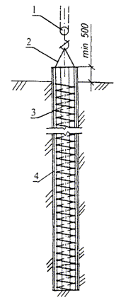 УТВЕРЖДАЮ Генеральный директор, к.т.н. _____________С.Ю. Едличка «___»______________2000 г. ТЕХНОЛОГИЧЕСКАЯ КАРТА 7391 ТК Главный инженер _________________А.В. Колобов Начальник отдела _________________Б.И. Бычковский 2000 Технологическая карта на устройство ограждений из буронабивных свай (далее «Технологическая карта») предназначена для производителей работ, мастеров и бригадиров, для работников служб комплектации и технического надзора, а также инженерно-технических работников, разрабатывающих проекты производства работ. При разработке «Технологической карты» учтен опыт ряда строительных организаций России по устройству буронабивных свай. Привлечены данные научно-технической литературы и периодической печати. В значительной степени учтен опыт строителей Московского региона. При выполнении работы учтены требования «Методических указаний о порядке разработки и пересмотра действующих технологических карт» и «Методического пособия по устройству ограждений из буронабивных свай», разработанных ОАО ПКТИпромстрой. Работа выполнена сотрудниками лаборатории совершенствования организации и технологии строительства (отдел 41) ОАО ПКТИпромстрой в составе: Стронгин И.Я. - исполнитель; Покровская Е.В. - компьютерная обработка; Воинова Е.А. - компьютерная обработка и графика; Бузов Г.С., к.т.н. - научный консультант; Ярымов Ю.А. - техническое сопровождение разработки; Бычковский Б.И. - корректура и нормоконтроль; Шахпаронов В.В., к.т.н. - научно-методическое руководство и редактирование; Едличка С.Ю., к.т.н., заслуженный строитель РФ - общее руководство разработкой технологической карты. СОДЕРЖАНИЕ 1 ОБЛАСТЬ ПРИМЕНЕНИЯ1.1 Областью применения буронабивных свай является ограждение стен котлованов вблизи улиц с интенсивным движением транспорта, вблизи зданий и инженерных коммуникаций, а также на плотно застроенных территориях. Они используются также для фундаментов зданий, опор мостов и других инженерных сооружений в качестве несущих конструкций. Ограждения из буронабивных свай, как правило, более экономичны, чем «стены в грунте», характеризуются повышенной жесткостью и не вызывают подвижек и деформаций грунтового массива и расположенных поблизости зданий и инженерных коммуникаций. 1.2 В грунтах естественной влажности применяют преимущественно касающиеся буронабивные сваи (тангенциальные и выпукловогнутые), а также отдельно расположенные сваи с заполнением пространства между ними монолитным бетоном, железобетоном или набрызг-бетоном. 1.3 Буронабивные сваи могут располагаться вдоль бровки котлована с определенным шагом (рисунок 1), объединяясь между собой затяжкой из досок, тонких железобетонных плит, гофрированных стальных листов. В настоящей технологической карте рассмотрены вопросы устройства ограждений из буронабивных свай диаметром 600 - 800(1000) мм, при шаге до 3000 мм и глубиной до 15 - 20 м. Рисунок 1 - Ограждения из буронабивных свай 1 - шаг свай (до 3000 мм); 2 - диаметр свай (600 - 1000 мм); 3 - затяжка. 2 ТЕХНОЛОГИЯ И ОРГАНИЗАЦИЯ ВЫПОЛНЕНИЯ РАБОТ2.1 Требования к качеству предшествующих работ2.1.1 Работам по устройству буронабивных свай должны предшествовать: - отключение и перенос из рабочей зоны всех надземных и подземных коммуникаций; - планировка строительной площадки на заданной отметке; - укладка железобетонных дорожных плит для проезда автотранспорта, работы буровых 
