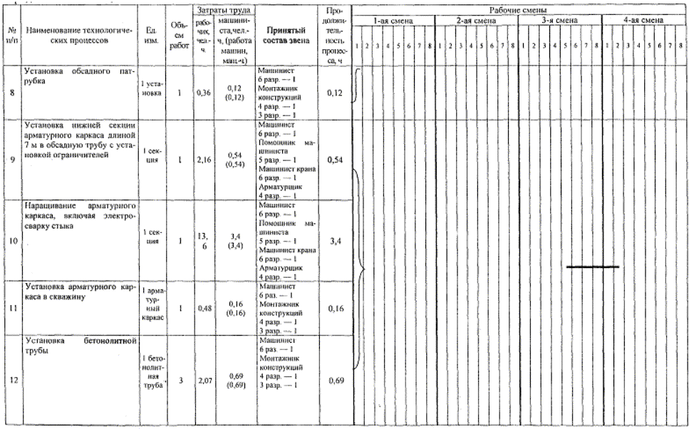 Таблица 11 - График производства работ на устройство одной буронабивной сваи
