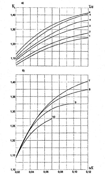 при hm/hd = 1. 5.14. Суммарную равнодействующую ледовой нагрузки от поля торошения Fr, MH, при толщине обломков льда, слагающих торос hb> 0,8 м, следует определять как сумму нагрузок от каждой из частей тороса Fr = Fs+Fm+Fk (5.17) Нагрузки от надводной Fs, средней Fm и подводной Fk частей поля торошения, МН, следует определять по формулам Fs = mk·kv··Rs·b·hs (518) Fm = m·kb·kv·Rm·b·hs (5.19) Fk = m·k·kv··Rk·b·hk (5.20) где b - ширина (диаметр d) опорной части сооружения, м: m, k и kb - коэффициенты, принимаемые по СНиП 2.06.04-82* 1995 (п. 5.5, таблицы 29, 32 и 30 соответственно); kv - коэффициент учитывающий скорость деформации