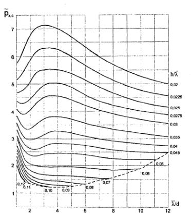 графикам рис. 3.3, используя значение. 3.8. Минимальное значение уровня при ложбине стоячей волны у вертикальной стены ηt, м, необходимо определять по формуле ηt =2h - ηc 3.9. При определении нагрузок и воздействий значения безразмерных коэффициентов 3.10. Максимальное значение волновой нагрузки на 1 пог. м длины вертикальной стенки при подходе гребня стоячей волны Px,c, кН/м, следует определять по формуле Px,c = где g - ускорение свободного падения, м/с2. 3.11. Минимальное значение волновой нагрузки на 1 пог. м длины вертикальной стенки при подходе ложбины стоячей волны Px,t, кН/м, следует определять по формуле Px,c = - 3.12. Максимальный момент силы волнового давления на полосу вертикальной стены шириной 1м относительно подошвы сооружения в фазе гребня волны Мх,c, кН, следует определять по формуле Мх,c = 3.13. Минимальный момент силы волнового давления на полосу вертикальной стены шириной 1м относительно подошвы сооружения в фазе ложбины волны Mx,t, кН, следует определять по формуле Mx,t = - 3.14. Волновое давление на уровне подошвы сооружения в фазе гребня волны Pf,c, кПа, следует определять по формуле Pf,c = 3.15. Волновое давление на уровне подошвы сооружения в фазе ложбины волны Pt,c, кПа, следует определять по формуле Pt,c = - 3.16. При подходе фронта волны к сооружению со стороны открытой акватории под углом а волновую нагрузку на вертикальную стену необходимо уменьшить путем умножения ее на коэффициент kcs,t, принимаемый по таблице 3.1. Таблица 3.1