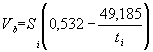 - 2,60·ln при где ρi - среднее арифметическое значение плотности ледяных кернов (призм) по толщине ледяного поля, кг/м3, принимаемое по опытным данным, а при их отсутствии - по «Океанографическим таблицам». Vb - среднее арифметическое значение количества жидкой фазы по толщине ледяного поля, ‰, определяемое по формуле