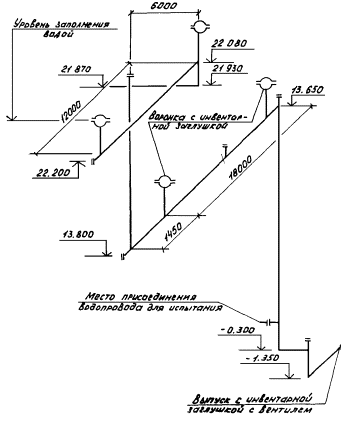 СХЕМА СИСТЕМЫ ВОДОСТОКОВ ОБЩЕСТВЕННОГО ЗДАНИЯ, ПОДГОТОВЛЕННОЙ К ИСПЫТАНИЮ