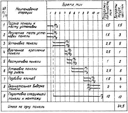 ВРЕМЕННОЕ КРЕПЛЕНИЕ ПАНЕЛИ; 0,5 мин; М1, М2; скобы-захваты, монтажные площадки, траверса