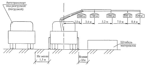 Рисунок 3 - Вертикальная привязка крана-манипулятора ПК 7000 Рисунок 4 - Горизонтальная привязка крана-манипулятора ПК 7000 2.2 На рисунках 5, 6, 7 и 8 приведены общий вид крана-манипулятора ПКК 8000, его диаграмма грузоподъемности, вертикальная и горизонтальная привязка крана-манипулятора. 2.3 Производство погрузочно-разгрузочных работ включает следующие операции: -перемещение крана-манипулятора и установка его в рабочее положение на все имеющиеся выносные опоры; -подбор съемных грузозахватных приспособлений; -осмотр и строповка груза, при необходимости закрепление оттяжек (для длинномерных грузов); -подача сигналов оператору; -погрузка и выгрузка груза с подъемом или опусканием его и поворотом стрелы; -укладка подкладок и прокладок под конструкции или детали; -расстроповка груза, отцепка оттяжек. ОПОРНЫЙ КОНТУР Расстояние между передними опорами, мм 4550 Расстояние между задними опорами, мм 2100 Расстояние между передними и задними опорами, мм 2300 Рисунок 5 - Общий вид крана-манипулятора ПКК 8000 Рисунок 6 - Диаграмма грузоподъемности крана-манипулятора ПКК 8000 Рисунок 7 - Вертикальная привязка крана-манипулятора ПКК 8000 Рисунок 8 - Горизонтальная привязка крана-манипулятора ПКК 8000 2.4 Погрузочно-разгрузочные работы необходимо осуществлять в следующей последовательности: - в определенном схемой месте, на подготовленной площадке, лицо, ответственное за безопасное производство работ, устанавливает кран-манипулятор на опоры и обозначает знаками границы опасных зон в соответствии с технологической картой; - стропальщики подбирают съемные грузозахватные приспособления, соответствующие массе и характеру перемещаемого груза, проверяют их исправность путем осмотра и наличия на них клейм или металлических бирок с обозначением номера, даты испытания и грузоподъемности, проверяют массу груза, предназначенного к перемещению краном-манипулятором; - убедившись в соответствии всех параметров нормам, стропальщик подает сигнал оператору крана-манипулятора переместить стрелу к месту строповки груза; - стропальщики осуществляют строповку перемещаемого груза; - после осуществления строповки груза стропальщики убеждаются в том, что груз надежно закреплен и ничем не удерживается, что на грузе, под грузом, внутри груза нет незакрепленных деталей и инструмента и что груз во время подъема не может за что-либо зацепиться, а также в отсутствии людей возле грузов, между грузами, оборудованием и т.д.; - затем стропальщик подает сигнал оператору крана-манипулятора приподнять груз на высоту 200 - 300 мм, убеждается в правильности строповки и равномерности натяжения ветвей стропа, отходит на безопасное расстояние и дает сигнал на перемещение груза к месту разгрузки; - стропальщики принимают груз на высоте до 1 м от уровня площадки (земли), ориентируют его в соответствии со схемой складирования и старший стропальщик дает сигнал оператору крана-манипулятора опустить груз с таким расчетом, чтобы нижняя часть груза находилась от уровня площадки на высоте до 0,4 - 0,5 м; - убедившись в правильной ориентации груза над местом складирования (штабелем) стропальщик подает сигнал оператору опустить груз на площадку. Стропы при этом остаются в натянутом положении. Если груз опущен и находится в устойчивом положении, стропальщик дает сигнал оператору ослабить стропы; - стропальщ
