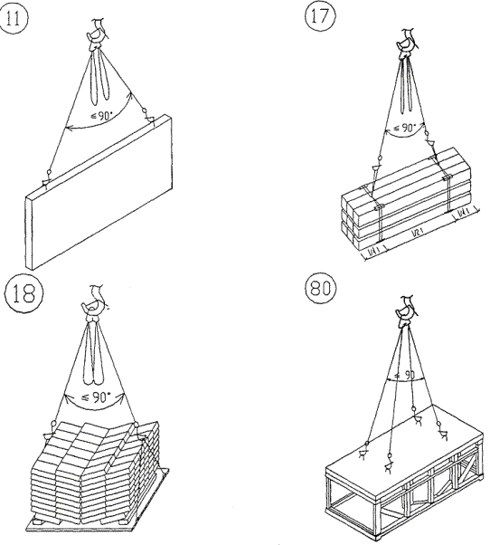 6 ПЕРЕЧЕНЬ НОРМАТИВНО-ТЕХНИЧЕСКОЙ ЛИТЕРАТУРЫ1 СНиП 12-03-2001 «Безопасность труда в строительстве. Часть 1. Общие требования». 2 СНиП 12-04-2002 «Безопасность труда в строительстве. Часть 2. Строительное производство». 3 СНиП 23-05-95 «Естественное и искусственное освещение». 4 ГОСТ 12.0.004-90 «ССБТ. Организация обучения безопасности труда. Общие положения». 5 ГОСТ 12.1.004-91* «ССБТ. Пожарная безопасность. Общие требования». 6 ГОСТ 12.1.046-85 «ССБТ. Строительство. Нормы освещения строительных площадок». 7 ГОСТ 12.3.009-76* «ССБТ. Работы погрузочно-разгрузочные. Общие требования безопасности». 8 ГОСТ 12.1.051-90 «ССБТ. Электробезопасность. Расстояния безопасности в охранной зоне линий электропередачи напряжением свыше 1000 В». 9 ГОСТ 12.3.020-80* «ССБТ. Процессы перемещения грузов на предприятиях. Общие требования безопасности». 10 ГОСТ Р 12.4.026-2001 «ССБТ. Цвета сигнальные, знаки безопасности и разметка сигнальная. Назначение и правила применения. Общие технические требования и характеристики. Методы испытаний». 11 ЕНиР. Единые нормы и расценки на строительные, монтажные и ремонтно-строительные работы. Сборник 1. Внутрипостроечные транспортные работы. 12 ПБ 10-257-98 «Правила устройства и безопасной эксплуатации грузоподъемных кранов-манипуляторов» Госгортехнадзора России. 13 ПОТ РМ-007-98 «Правила по охране труда при погрузочно-разгрузочных работах и размещении грузов». 14 ПОТ РМ-016-2001 «Межотраслевые правила по охране труда (правила безопасности) при эксплуатации электроустановок». 15 ППБ 01-03 «Правила пожарной безопасности в Российской Федерации». 16 «Правила дорожного движения Российской Федерации». 17 «Правила по охране труда на автомобильном транспорте». ПРИЛОЖЕНИЕ А(обязательное) СХЕМЫ СТРОПОВОК