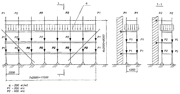 1 - подкладка; 2 - башмак; 3 - стойка; 4 - поперечина; 5 - продольная связь 6) Схема установки продольных связей по наружному ряду стоек на отм. 2,000 (1 ряд)