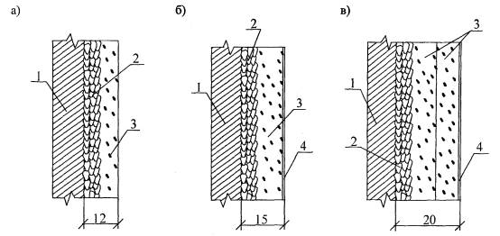 КАРТА 106-05 ТК Главный инженер __________ А.В. Колобов Начальник отдела __________ Б.И. Бычковский 2005 Технологическая карта содержит решения по организации и технологии устройства простых, улучшенных и высококачественных штукатурных покрытий внутренних кирпичных стен и перегородок жилых, гражданских и общественных зданий при их строительстве, реконструкции и ремонте. В технологической карте приведены: область применения, технология и организация работ, требования к качеству и приемке работ, калькуляция трудовых затрат, график производства работ, потребность в средствах механизации и инструмента, решения по безопасности и охране труда. Технологическая карта предназначена для производственного персонала, инженерно-технических работников строительных и проектных организаций. Технологическая карта разработана сотрудниками ОАО ПКТИпромстрой: Аганина О.В., Савина О.А. - разработка технологической карты, компьютерная обработка и графика; Бычковский Б.И. - разработка технологической карты, техническое руководство, корректура и нормоконтроль; Черных В.В. - технологическое сопровождение разработки; Колобов А.В. - общее техническое руководство разработкой технологических карт; Едличка С.Ю., к.т.н., - общее руководство разработкой технологической документации; Авторы будут признательны за предложения и возможные замечания по составу и содержанию настоящей карты. Контактный телефон: (095) 214-14-72 Факс: (095) 214-95-53 E-mail: pkti@co.ru http://www.pkti.co.ru СОДЕРЖАНИЕ 1 ОБЩИЕ ДАННЫЕ1.1 Технологическая карта разработана на устройство простых, улучшенных и высококачественных штукатурных покрытий внутренних кирпичных поверхностей стен и перегородок высотой до 3,5 метров (далее - штукатурные работы) с применением известково-цементных растворов механизированным способом. 1.2 Штукатурка - отделочный слой на поверхностях различных конструкций зданий и сооружений (стен, перегородок, перекрытий, колонн), который выравнивает эти поверхности, придает им определенную форму, защищает конструкции от влаги, выветривания, огня, повышает сопротивление теплопередаче, уменьшает воздухопроницаемость и звукопроводность ограждающих конструкций. 1.3 По назначению и свойствам монолитные штукатурки подразделяют на обычные - предназначенные для эксплуатации в нормальных температурно-влажностных условиях, специальные - выполняющие защитные функции по отношению к основанию, и декоративные - для отделки фасадов и некоторых помещений общественных зданий (вестибюлей, холлов, лестничных клеток). 1.4 Обычные штукатурки в зависимости от тщательности выполнения подразделяют на три категории: простые, улучшенные и высококачественные, которые представлены на рисунке 1. а - простая; б - улучшенная; в - высококачественная; 1 - основание; 2 - обрызг; 3 - грунт; 4 - накрывка Рисунок 1 - Виды штукатурки Простую штукатурку выполняют из двух слоев раствора: обрызга и грунта общей толщиной до 12 мм. Улучшенную штукатурку выполняют из трех слоев раствора: обрызга, грунта и накрывочного слоя общей толщиной до 15 мм. Высококачественная штукатурка состоит из обрызга, двух слоев грунта и накрывочного слоя общей толщиной 20 мм. 1.5 Состав и содержание карты включает требования, предъявляемые к штукатурным составам и готовности внутренних поверхностей к работам по оштукатуриванию поверхностей, решения по технологии и 