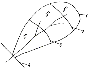 При отсутствии водоразделов в замыкающем створе (рис. 3.5) расчетные максимальные расходы воды для отдельных сооружений на равных участках водотоков с относительно спокойным течением рекомендуется определять по следующим соотношениям: Qm1 = Q1 + ΔQ2; Qm3 = Q3 + ΔQ3; где Q1, Q2, Q3 - паводочные расходы, вычисленные морфометрически по расчетному створу для каждого водотока, имеющего самостоятельное русло, м3/с; Q1, Q2, Q3, Q4 - дополнительные расходы, учитывающие возможное перераспределение воды между дорожными водопропускными сооружениями в паводок, определяемые по участкам живого сечения, обозначенным на рис. 3.5 позициями 1, 2, 3, 4. Рис. 3.5 Схема перераспределения расходов воды при отсутствии водоразделов: 1, 2, 3, 4 - распределяемые части живого сечения Вычисление расчетных расходов водотоков по соотношениям (3.21) предусматривает предварительное определение расхода воды с общей площади и морфометрического подбора расчетного уровня высокой воды, соответствующего максимальному расходу воды с общей площади. Для большего числа пересекаемых водотоков следует принимать аналогичную схему расчета. На водотоках с четкими водоразделами в бассейне, но при их отсутствии в замыкающем створе (рис. 3.6) расчетный расход каждого из них рекомендуется определить по формуле: