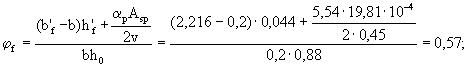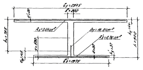 σs = 109,9 · 1,35 = 148,4 МПа (1484 кгс/см2). Принимая размеры нижней полки равными bf =1,216 м и hf = 3,7 см, определяем