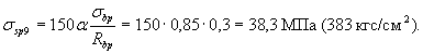 σmt = -1,83 · 106 + 2,5 · 106 = 0,67 МПа (6,7 кгс/см2); σmc = 1,83 · 106 + 2,5 · 106 = 4,33 МПа (43,3 кгс/см2);