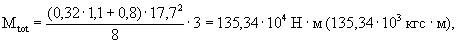 Рассматриваем сечение на расстоянии, равном lp = 1,023 м (102,3 см). Mw = qw l x / 2 - qw x2 / 2 = 0,32 · 17,7 · 0,96 / 2 - 0,32 · 0,962 / 2 = 2,57 · 104 Нм (2,57 · 103 кгс · м);