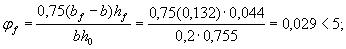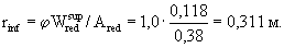 Wintred = Jred / y = 0,047 / 0,5 = 0,094 м3 (94 · 103 см3); φ = 1,6 - σb / Rpbser = 1,6 - 7,0 / 18,5 = 1,22, но не более 1. Принимаем φ = 1,0;