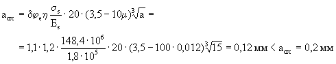 Для определения σs на уровне нижнего ряда растянутой арматуры находим коэффициент δn, принимая X = 0,5 h0 = 0,5 · 0,88 = 0,44 м и a2 = 0,035 м, где a2 - расстояние от крайнего стержня до наиболее растянутого волокна.