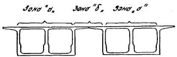 6.2. Пространственный расчет перекрытия с коробчатыми настилами следует считать поверочным и рекомендуется выполнять после проведения расчетов конструкций по нормальным и наклонным сечениям по предельным состояниям первой и второй групп. Методика и пример расчета приведены в прил. 1. 7. РАСЧЕТ КОРОБЧАТЫХ НАСТИЛОВ ПЕРЕКРЫТИЙ НА ДИНАМИЧЕСКИЕ ВОЗДЕЙСТВИЯ7.1. Расчет коробчатых настилов перекрытий на динамические воздействия необходимо проводить с учетом совместной работы конструкций с армированной бетонной подготовкой пола толщиной не менее 70 мм. 7.2. Динамические нагрузки от технологического оборудования и расстановку его следует принимать в соответствии с заданием на строительное проектирование и паспортными данными на оборудование, представляемыми заводами-изготовителями. При отсутствии перечисленных данных их назначают согласно указаниям «Инструкции по определению динамических нагрузок от машин, устанавливаемых на перекрытиях промышленных зданий» (М.: Стройиздат, 1966). 8. РАСЧЕТ КОРОБЧАТОГО НАСТИЛА НА ТЕМПЕРАТУРНЫЕ ВОЗДЕЙСТВИЯ8.1. Температурные воздействия на коробчатый настил, которые могут возникать в процессе монтажа зданий при большой разнице температур по высоте сечения конструкции, следует предотвращать. Для этого монтаж конструкций и их закрепление в проектном положении необходимо выполнять в соответствии с требованиями, приведенными в п. 12.2. 9. ТЕПЛОТЕХНИЧЕСКИЙ РАСЧЕТ ПОКРЫТИЙ С КОРОБЧАТЫМИ НАСТИЛАМИРасчет требуемого сопротивления теплопередаче покрытия9.1. Величину требуемого сопротивления теплопередаче покрытия следует определять для двух зон: а) над пустотами коробчатых настилов; б) над консольными свесами верхней полки коробчатых настилов или при их отсутствии в промежутках между коробчатыми настилами. 9.2. Требуемое сопротивление теплопередаче покрытий для зоны «а» следует определять по методике НИИСФ Госстроя СССР «Разработка инженерных методов теплотехнического расчета покрытий с пустотным настилом при обтекании поверхности сжатым воздухом» из расчета не выпадения конденсата в пустотах коробчатых настилов при пропуске через них воздуха с относительной влажностью более 75 %:
