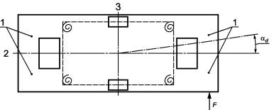 1 - качалка; 2 - зона приземления качалки; 3 - зона безопасности Рисунок 9 5.11.2 Ширина зоны приземления по периметру качалки - не менее 1000 мм. 6 Дополнительные требования6.1 Для качалки типа 1 применяется демпфирование. 6.2 Диапазон движения качалки типа 4 - не более 600 мм. 7 Методы испытанийДля оценки безопасности конструкции качалок применяют методы испытаний по ГОСТ Р 52169, а также следующие методы испытаний: 7.1 Испытания по определению угла наклона посадочного места и расстояния от нижней точки подвижного элемента качалки до поверхности игровой площадки - в соответствии с приложением А. 7.2 Испытания возможности защемления или сдавливания частей тела ребенка - в соответствии с приложением Б. 7.2.1 Деформация опоры при испытаниях не должна превышать 5 %. 7.3 Испытания устойчивости при горизонтальном нагружении - в соответствии с приложением В. 7.3.1 При испытаниях качалки типа 1 максимально допустимое отклонение корпуса L от продольной оси на расстоянии 2000 мм от центральной оси качалки (см. рисунок В.1) - не более 140 мм. 7.3.2 При испытаниях качалки типа 3а к посадочным местам прикладывают вертикальную нагрузку, эквивалентную числу детей в соответствии с ГОСТ Р 52169 (таблица А.2). Максимально допустимый угол отклонения корпуса относительно продольной оси качалки (см. рисунок В.2) - не более 5°. 7.4 По результатам испытаний оформляют отчет в соответствии с ГОСТ Р ИСО/МЭК 17025. 8 Обозначение и маркировкаОбозначение и маркировка качалок - по ГОСТ Р 52169. Приложение