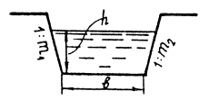 Гидравлический расчет канав и кюветов выполняется по уже известным Формулам путем определения скоростной и расходной характеристик потока. Рассчитывают расход (для определения ширины и глубины канавы-кювета) и скорость течения воды (для решения вопроса о типе укрепления). Сброс воды из кюветов и канав осуществляется непосредственно в водоем или в городскую подземную водосточную сеть. Подсоединение к подземной сети осуществляется к смотровому колодцу через оголовок с решеткой или просто через решетку в стенке колодца. Расчетные расходы нагорных канав определяются притоком поверхностных вод с бассейнов, расположенных вне городской территории. Расчетными расходами являются ливневые. Период перенаполнения принимают в пределах от 2 до 20%, т.е. переполнение допускается от 1 раза в 50 лет до 1 раза в 5 лет - в зависимости от размеров возможного затопления и характера последствий. Если имеются наблюдения за долевыми осадками, то расчетный расход определяется по уже известным формулам. Если наблюдений нет, то используют эмпирические формулы. Для определения среднего расхода может быть использована формула Q0=M∙F, л/с, где Q0 - среднегодовое значение расхода воды; М - модуль стока, т.е. количество воды, притекающей за 1 с, отнесенное к единице площади водосброса (л/с на 1 км2); F - площадь бассейна. Значение модулей стока принимается в зависимости от географических и климатических условий. Например, для района Москвы модуль стока определяется в 6 л/с. км2. Расчетная скорость определяется не только из условия не размываемости стенок русла и дна, но и из условия заиления канав. Поэтому можно написать неравенство: Vнер>Vрасч>Vзаил, где V - расчетная (допустимая) скорость; Vнер - не размывающая скорость; Vзаил - не заиливающая скорость. Предельная не заиливающая скорость находится в пределах от 0,3 до 0,5 м/с. Неразмывающая скорость зависит от типа грунта или укрепления: для грунтов - при глубине потока от 0,4 до 1,0 м - от 0,5 до 2 м/с; при цементобетонном укреплении - от 5 до 7 м/с. Таблица 9Коэффициент гидравлической шероховатости