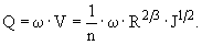 В выражениях для скорости и расхода потока множители перед уклоном принято объединять, обозначать единым показателем и называть: для