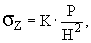где H - расстояние от поверхности грунта (глубина расположения) до точки, в которой определяется напряжение; Р - расчетная нагрузка; K - коэффициент.