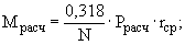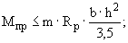 где rсp - средний радиус трубы; N - коэффициент опирания трубы: при укладке трубы на бетонное или железобетонное основание N=2,50; на плоское дно - 1,12; когда дну траншеи придается вогнутая форма с углом охвата трубы 90º - 1,50. Предельный изгибающий момент в стенках трубы при их работе на изгиб равен: а) для бетонных труб