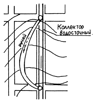 13. ЗАКЛЮЧЕНИЕ МАЛЫХ ПРОТОКОВ В ТРУБЫНа территории многих городов и районов протекают малые протоки: речки, ручьи. Каждый из протоков имеет свой бассейн стока поверхностных вод. Как правило, малые протоки имеют и малый летний расход. Благоустройство городских территорий требует заключения таких рек и ручьев в трубы, прокладываемые под поверхностью земли. Естественное русло каждого малого протока является тальвегом, собирающим и отводящим воду с территории своего бассейна. По этому тальвегу целесообразно проложить коллектор. В практике проектирования водосточной сети малые протоки обычно включают в сеть коллекторов соответствующего бассейна стока. Однако, при заключении протока в коллектор, возможно изменить положение русла и трассировать коллектор в соответствии с планировочным решением данного района города (т.е. чтобы коллектор проходил под улицей) (см. рис.18). Рис.18. Спрямление русла ручья коллектором При проектировании коллектора с заключенным в нем протоком расчетный расход определяется в зависимости от распространения бассейна стока в пределах городской территории или за ее пределами. При нахождении истока, и бассейна стока в пределах городской территории расчетный расход определяется обычным способом. При расположении части бассейна вне городской территории возможны разные случаи. Если эта "загородная" площадь бассейна невелика и не вызывает резкого увеличения расчетного расхода, то последний определяется обычным для проектирования городских водостоков способом. Если загородная часть бассейна протока велика и сток с нее значительно превышает сток с городской территории, то расчетный расход определяется с учетом стока с городской территории и пропуска транзитного расхода с внегородской части бассейна стока. При этом сеть рассчитывается на периоды переполнения с повторяемостью 1 раз в 10-50 лет, а иногда и 1 раз в 100 лет. В зависимости от пропускаемых расходов коллекторы для пропуска малых протоков могут иметь сечение до 3-3,5 м в диаметре. На практике обычно применяются коллекторы прямоугольного сечения высотой до 3 м и шириной от 2 ,5 до 4 м и более. При более значительных размерах проектируются и сооружаются двухсекционные коллекторы. На рис.19 показан малый коллектор для пропуска стока из водосливной канализации. Для коллекторов чаще всего применяются сборные конструкции из стеновых блоков, плиты днища и плиты перекрытия. Применяют и сборные конструкции из объемных элементов замкнутого сечения. Могут быть и другие конструктивные решения. Например: использование шпунтового ряда (ж/бетонного), для укрепления стенок траншеи в качестве стенок коллектора. По верху шпунта устраивается обвязка. Дно и перекрытие устраивают из плоских плит. Рис.19. Конструкция водосточного коллектора КОНТРОЛЬНЫЕ ВОПРОСЫ 1. Приведите формулы для расчета пропускной способности водоприемного колодца. 2. Перечислите виды и составные элементы городской водосточной сети. 3. Напишите формулы для определения интенсивности расчетного дождя. 4. Приведите формулы для гидравлического расчета водосточного коллектора. 5. Приведите формулы для гидрологического расчета водосточного коллектора. 6. Перечислите состав проекта водосточной сети и последовательность его разработки. ЛИТЕРАТУРА1. Алисов Б.П. Климат СССР. - М.: Высшая школа, 1969, - 104 с. 2