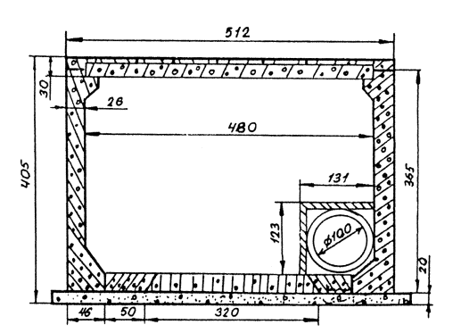 Kδ - коэффициент однородности бетона; b=L - длина рассчитываемого звена трубы; h=δ - толщина стенки трубы; m - коэффициент условий работы стенки трубы, m=1; ma -коэффициент условий работы арматуры (принимается в зависимости от вида арматуры); Ru - расчетное сопротивление бетона сжатию при изгибе; x - высота сжатой зоны; h0 - полезная высота сечения стенки трубы. Асбоцементные и керамические трубы по прочности подбирают путем сопоставления величины разрушающей нагрузки с усилением, возникающим от действия постоянной и временной нагрузок: