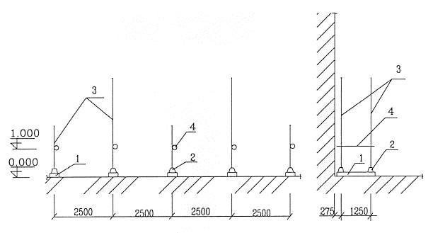 4) Схема установки поперечин на отм. 1.0 (I ярус)