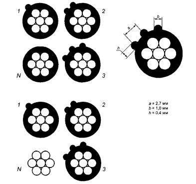 Таблица А.2 - Рекомендуемые конструкции нулевой несущей жилы самонесущих изолированных проводов и токопроводящей жилы защищенных проводов