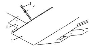 1 - картина разжелобка; 2 - медный кляммер; 3 - стоячий фальц с квадратными кромками Рисунок 21 - Разжелобок с одиночным закрепленным лежачим фальцем