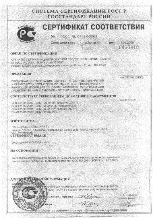 СТЕНЫ, ЧЕРДАЧНЫЕ ПЕРЕКРЫТИЯ И ОГРАЖДАЮЩИЕ КОНСТРУКЦИИ МАНСАРД С ПРИМЕНЕНИЕМ ОТРАЖАЮЩЕЙ ТЕПЛОИЗОЛЯЦИИ ПЕНОФОЛ И АРМОФОЛ Материалы для проектирования и рабочие чертежи узлов Москва 2006 Шифр М24.40/05