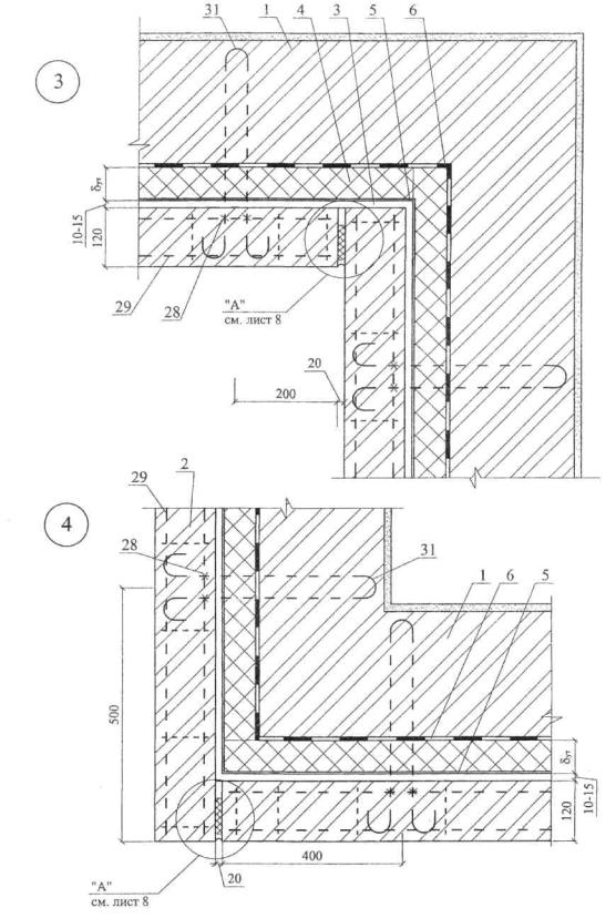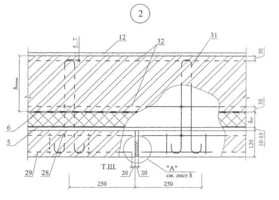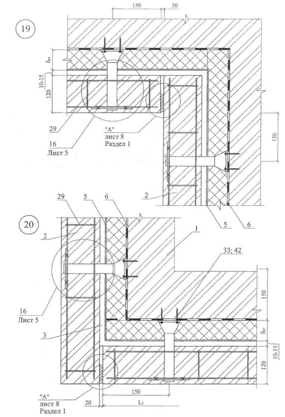 М24.40/05 - 2.1 Реконструкция Схема 5 - 8 Узел 16 - 26 СХЕМА № 5. Расположение плит утеплителя и защитно-декоративной кладки