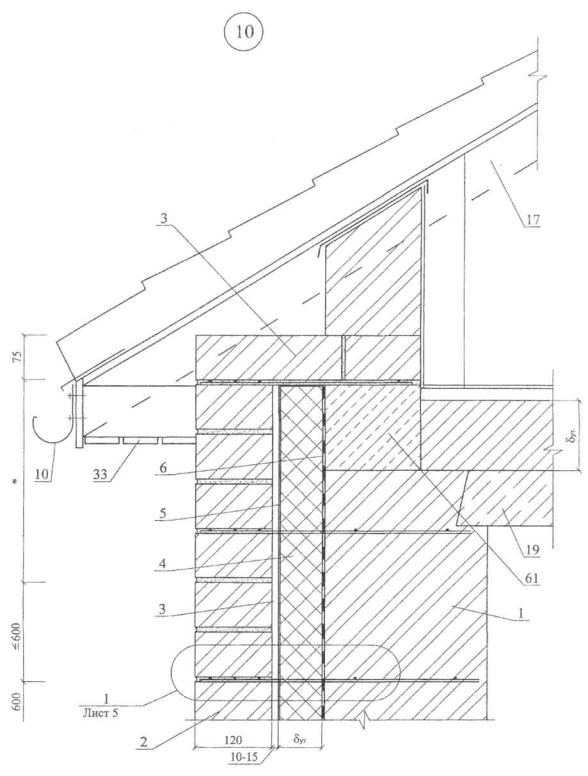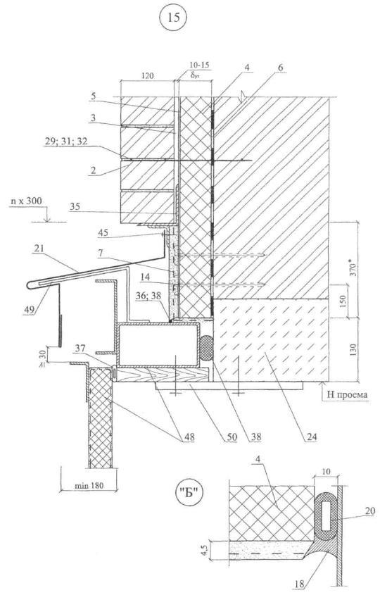 СХЕМА № 1. Расположение плит утеплителя, защитно-декоративной кладки, несущей балки-пояса М24.40/05 - 1.1 Стены с отделочным слоем из кирпича Новое строительство Схема 1 - 4 Узел 1 - 15