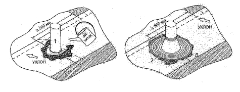 1.1.5. В выравнивающих стяжках из цементно-песчаного раствора и асфальтобетона должны быть предусмотрены температурно-усадочные швы в соответствии с требованиями п.п. 2.19 и 2.20 главы СНиП II-26. 1.1.6. Теплоизоляционные плиты из пенополистирола, фенольного пенопласта и других сгораемых утеплителей могут быть использованы в качестве основания под водоизоляционный ковер из рулонных материалов без устройства выравнивающей стяжки только при свободной укладке рулонного материала, в том числе с механическим креплением его, так как огневой способ наклейки при сгораемом утеплителе недопустим, а использование горячих мастик и холодных клеящих составов на растворителях разрушающе воздействует на такие материалы. 1.1.7. Пароизоляция для предохранения теплоизоляционного слоя и основания под кровлю от увлажнения должна предусматриваться в соответствии с требованиями СНиП 23-02. В местах примыкания теплоизоляционного слоя к стенам, стенкам фонарей, шахтам и оборудованию, проходящему через покрытие или чердачное перекрытие, пароизоляция должна быть поднята на высоту, равную толщине теплоизоляционного слоя, а в местах деформационных швов должна перекрывать края металлического компенсатора. Водоизоляционный ковер1.1.8. Рулонные кровли выполняют из битумных и битумно-полимерных материалов с картонной, стекловолокнистой, комбинированной основами и основой из полимерных волокон (наплавляемых или наклеиваемых на мастиках), а также из эластомерных и термопластичных рулонных кровельных материалов, отвечающих требованиям ГОСТ 30547. 1.1.9. Мастичные кровли выполняют из битумных, битумно-полимерных, битумно-резиновых, битумно-эмульсионных или полимерных мастик, отвечающих требованиям ГОСТ 30693, с армирующими стекловолокнистыми прокладками или прокладками из полимерных волокон. 1.1.10. Конструкция водоизоляционного ковра (количество слоев) зависит от уклона кровли, гибкости применяемого материала и принимается с учетом рекомендаций, изложенных в Приложениях 3…5. Водоизоляционный ковер инверсионного и эксплуатируемого типов кровли (К-3 и К-4 см. табл.1) следует применять на уклонах до 10 %. Мастичные кровли рекомендуются преимущественно в новом строительстве при сложном рельефе покрытия, а также для ремонта существующих (старых) кровель. 1.1.11. Уклон кровли в ендовах должен быть не менее 0,5 % при уклонах скатов покрытия менее 3 % не менее 1 %;при уклонах скатов 3 % и более. В ендовах кровель с уклоном более 10 %, выполненных из мастичных материалов должен быть предусмотрен защитный слой из гравия или крупно-зернистой посыпки на ширину усиления основного водоизоляционного ковра. 1.1.12. В местах перепада высот пролетов, примыканий кровли к парапетам, стенам бортов фонарей, в местах пропуска труб, у водосточных воронок, вентиляционных шахт и т.п. должно предусматриваться устройство дополнительного водоизоляционного ковра, количество слоев которого принимают в соответствии с учетом рекомендаций, изложенных в Приложениях 3...5. 1.1.13. Высота наклейки рулонных материалов и мастичных слоев в местах примыканий к вертикальным поверхностям должна быть не менее 100 мм (на высоту наклонного бортика) - для слоев основного водоизоляционного ковра и не менее 250 мм - для дополнительных. В соответствии с ГОСТ 30693 прочность сцепления нижнего слоя кровельного ковра со стяжками и ме