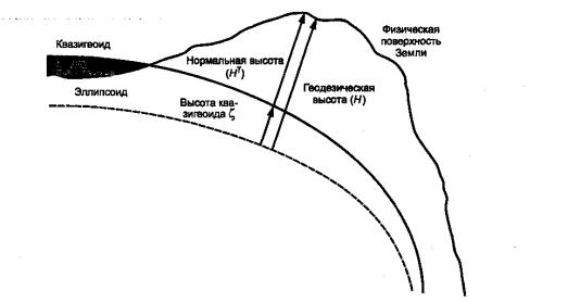 Рисунок А.4 - Взаимосвязь геодезической высоты, высоты квазигеоида и нормальной высоты