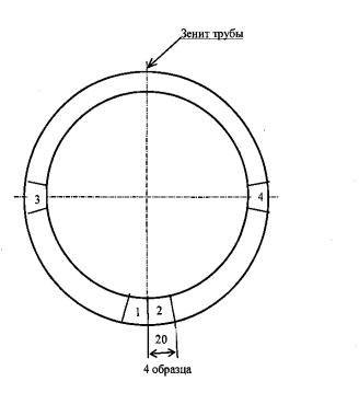 2.2 Для сварки в монтажных условиях рекомендуется использовать электроды на железоникелевой и никелевой основе. Марки и характеристики рекомендуемых электродов приведены в таблице 3. 2.3 По согласованию с головным институтом ОАО «НПО ПКТИ им. Ползунова» (г. Санкт-Петербург) допускается применение других марок электродов, обеспечивающих возможность сварки в потолочном положении и получение необходимых характеристик сварного соединения. 2.4 Для монтажа трубопроводов применяются фасонные части из высокопрочного чугуна, изготовленные согласно ТУ 1461-065-50254094-2004. 2.5 В сварных соединениях элементов из разнородных материалов могут применяться детали (фланцы, трубы) из низкоуглеродистой конструкционной стали, поставляемых по ГОСТ 10705-80, ГОСТ 1050-88. 3. Квалификация сварщиков для допуска к сварке трубопроводов3.1 К прихватке и сварке трубопроводов из высокопрочного чугуна допускаются сварщики после дополнительного обучения и аттестации по специальной программе. 3.2 Независимо от наличия соответствующего удостоверения сварщики должны перед началом работы заварить один контрольный образец в неповоротном положении. Качество образца проверяется визуальным контролем и исследованием макрошлифов. 3.3 Из контрольного образца должны быть вырезаны не менее двух образцов из потолочного и двух образцов из вертикального положения сварки. 3.4 Схема вырезки образцов для изготовления макрошлифов приведена на рисунке 2. 3.5 Результаты визуального контроля должны удовлетворять п.5.16 СНиП 3.05.03-85. Тепловые сети. Результаты исследований макрошлифов считаются удовлетворительными, если обнаруженные дефекты не превышают размеры, указанные в таблице 3 СНиП 3.05.03-85 «Тепловые сети». 3.6 В случае получения неудовлетворительных результатов контроля качества пробного стыка (при надлежащем качестве сварочных материалов, установленном предварительной проверкой) сварщик к работе не допускается. Сварщик может быть допущен к сварке трубопроводов только после дополнительной практической подготовки и получения положительных результатов при сварке пробных стыков, но не ранее чем через 10 дней с момента отстранения от работы. 4. Сварочное оборудование4.1 Для ручной дуговой сварки трубопроводов из высокопрочного чугуна рекомендуется применять источники постоянного тока с крутопадающей характеристикой, например, выпрямители типа ВДУ-506, ВД-300, а также инверторные источники питания дуги, например, ВДУЧ-200, ФЕБ-350М и др. 4.2 Для подогрева и термической обработки сварных соединений на монтаже рекомендуется применять кольцевые воздушно-пропановые горелки (рис. 3). Рис. 2 Схема вырезки макрошлифов из контрольного образца сваренного в неповоротном положении. 1. Корпус горелки. 2. Центратор. 3. Замок. 4. Сопло. 5. Свариваемая труба. 6. Инжекторный узел Рисунок 3. Устройство пропаново-воздушной кольцевой горелки. 5. Подготовка и сборка деталей под сварку5.1 Резка труб и снятие фасок должны производиться механическим способом шлифмашинкой с абразивным армированным кругом. 5.2 Подготовка кромок труб под сварку приведена в таблице 4. 5.3 Кромки стыкуемых деталей и прилегающие к ним поверхности (снаружи и внутри) перед сваркой должны зачищаться до металлического блеска для удаления грязи, масла и ржавчины на ширине не менее 10 мм от торца. 5.4 Сборка элементов трубопроводов под сварку может п