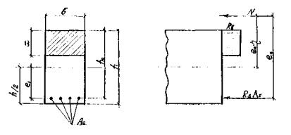 Рис. 6.20. Схема к расчету внецентренно сжатых железобетонных элементов Требуемую площадь растянутой арматуры Аs определяют либо методом подбора, либо решением следующего квадратного уравнения: