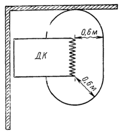 менее 0,60 м от двери в душевую кабину, изготовленную заводским способом (рисунок