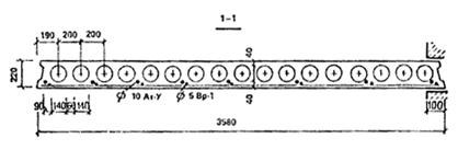 Приведенные толщины полок hf,red = h¢f,red = h1 + 0,0569d = 40 + 0,0569×140 = 48 мм. Прочность плиты по сечению вдоль средней по ее ширине пустоты без армирования проверяем по условию