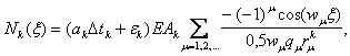 где аk — коэффициент линейных температурных деформаций бетона конструкций, образующий продольный пояс k; Dtk — расчетный перепад средних температур продольного пояса k; ek — расчетное изменение деформаций усадки бетона, образующего продольный пояс k; ЕAk — продольная жесткость k-го пояса (при k > 1 ЕAk = EA); wm = (2m ‑ 1) p/2; (30) x — безразмерная координата, отсчитываемая вдоль длины составной системы с началом отсчета по ее середине (0 £ x £ 1); b1, b — погонные жесткости при сдвиге продольных связей соответственно в первом и всех остальных ярусах составной системы;