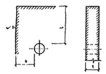 Pис. 5. Схема расположения отверстия в панели 1 — край панели или проема 3. Прочие детали для подъема, не указанные в п. 2, а также детали для подъема многослойных, однослойных армированных панелей и панелей из бетонов других видов следует проектировать в соответствии со СНиП 2.03.01—84. 4. Рекомендуемый расчет прочности анкеровки предполагает отсутствие сквозных трещин в верхней части изделия. Строповка за детали и отверстия бракованных изделий, имеющих сквозные трещины в зоне анкеровки деталей и около отверстий, не допускается. Конструктивные требования 5. Применяемая арматурная сталь для петель и стержней должна соответствовать требованиям СНиП 2.03.01—84, предъявляемым к строповочным петлям. Детали из листовой стали изготавливают из стали марок ВСтЗпс6 и ВСтЗсп5 по ГОСТ 380—71* в соответствии с указаниями СНиП II-23-81* по применению сталей в зависимости от расчетной температуры. Глубина заделки l деталей должна быть не менее 25 см (при изготовлении в кассетах — не менее 30 см), а расстояние между двумя соседними деталями — не менее 2,5 l. Длина и конструкция выступающей из бетона части деталей зависят от конструкции захватного приспособления и особенностей узла сопряжения сборных элементов. Выступающая часть детали из листовой стали должна быть рассчитана в соответствии со СНиП II-23-81*. Диаметр строповочного отверстия назначается в зависимости от имеющихся строповочных приспособлений, но не более 70 мм; глубина заложения отверстия l (см рис. 5) определяется по п. 15, но не менее величин, указанных выше для деталей. Расстояние между деталью и краем панели или проема b (см. рис. 1 — 4) назначается не менее 200 мм, а при устройстве строповочных отверстий — не менее 400 мм (см. рис. 5). 7. Шайбы, как правило, следует изготавливать путем высадки плоской головки (высаженной пластинки). Возможна также приварка к стержню. При этом размер пластины (диаметр круглой или сторона квадратной шайбы) должен быть не менее величины, определяемой расчетом (см. ниже), а толщина пластины — не менее с/4. Детали из листовой стали следует, как правило, изготовлять методом штамповки с последующим машинным гнутьем, а стержни с крюком и строповочные петли — с применением машинного гнутья. При изготовлении изделий должно быть обеспечено точное положение выступающей из бетона части деталей для возможности использования их в качестве фиксаторов изделий на монтаже. Необходимо не допускать изгиба выступов при транспортировке и монтаже панелей. Точность положения детали в срединной плоскости изделия и ее выступающей части должна соответствовать допускам на установку арматуры и выпусков железобетонных изделий. При установке стержня с крюком последний должен быть обращен в сторону, противоположную ближайшему краю изделий или проема (см. рис. 2). Расчет деталей 8. Расчет деталей включает в себя определение действующего усилия с коэффициентом надежности по нагрузкам, равным 1, подбор поперечного сечения деталей по прочности металла и определение глубины заделки изделия и размеров концевой части деталей по прочности бетона. Прочность бетона проверяется для двух возможных видов разрушения: выкалывания и локального разрушения в месте расположения концевой части анкера. Расчет по металлу выступающей части деталей должен быть выполнен в зависимости от типа детали и способов захвата. 