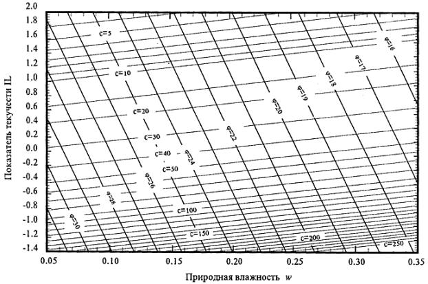 Нормативные значения прочностных и деформационных характеристик и величины расчетного сопротивления грунтов