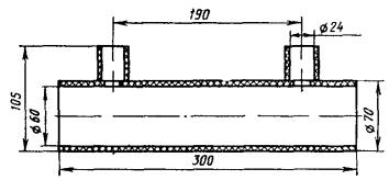 Рис. 12.3. Конус полиэтиленовый для восстановления покровов комбинированным способом Рис. 12.4. Конус полиэтиленовый с выводом для КИП Рис. 12.5. Конус полиэтиленовый с выводом для КИП для кабеля типа КМА-4 Рис. 12.6. Труба полиэтиленовая Рис. 12.7. Полумуфты полиэтиленовые 12.18. Восстановление защитных изолирующих покровов шлангового типа при помощи ТУТ и полиэтиленовых (пластмассовых) деталей (комбинированный способ) должно производиться следующим образом: а) выполнить работы, изложенные в п. 12.10, а; б) до сращивания сердечника надвинуть на концы кабеля ТУТ и пластмассовые детали; в) зачистить шкуркой или наждачным полотном пластмассовые шланги на длине 150 - 200 мм от их торцов, а также участки пластмассовых деталей, на которых предстоит усадках ТУТ; г) выполнить работы, изложенные в п. 12.10, г; д) нагреть в металлической емкости клей-расплав ГИПК 14-16 до 80 - 90 °С; е) прогреть металлическую муфту и оголенные участки металлической оболочки слабым открытым пламенем паяльной лампы до 50 - 60 °С; ж) нанести кистью сплошной равномерный слой клея-расплава ГИПК 14-16 на оголенные участки оболочки, конуса металлической муфты с захватом ее цилиндрической части на расстоянии, равном длине цилиндрической части полиэтиленового конуса (рис. 12.8, а); з) надвинуть полиэтиленовые конуса на металлическую муфту до упора (рис. 12.8, б); и) прогреть полиэтиленовый конус и прилегающий к нему участок полиэтиленового шланга слабым пламенем паяльной лампы до 50 - 60 °С; к) надвинуть на конус укороченный отрезок ТУТ таким образом, чтобы ее конец упирался в расширяющуюся часть конуса, а середина совпадала с торцом узкой части полиэтиленового конуса, т.е. чтобы перекрытие отрезком ТУТ шланга кабеля и полиэтиленового конуса было примерно одинаковым. Аналогично установить укороченный отрезок ТУТ на другом конце сростка; л) произвести усадку ТУТ с обоих концов сростка и проверить качество усадки согласно п. 12.10, з (рис. 12.8, в); м) надвинуть на сросток основную ТУТ таким образом, чтобы концы ее перекрывали полиэтиленовые конуса согласно табл. 12.1. Произвести усадку основной ТУТ и проверить качество усадки согласно п. 12.10, ж, з (рис. 12.8, г); н) выполнить работы, предусмотренные п. 12.10, и рис. 12.1, е. Рис. 12.8. Восстановление изолирующих покровов комбинированным способом при помощи пластмассовых деталей и ТУТ: а - нанесение компаунда; б - установка полиэтиленового конуса; в - установка и усадка укороченной ТУТ; г - усадка основной ТУТ: 1 -шланг; 2 - металлическая оболочка; 3 - металлическая муфта; 4 - конус полиэтиленовый; 5 - укороченный отрезок ТУТ; 6 - основная ТУТ 12.19. Вместо полиэтиленовых конусов могут быть использованы полиэтиленовые полумуфты (рис. 12.7). Над стыком полумуфт между собой, а также полумуфт со шлангом кабеля усаживаются отрезки ТУТ (рис. 12.9) с учетом требований, изложенных в п. 12.6. Рис. 12.9. Восстановление изолирующих покровов комбинированным способом при помощи полиэтиленовых полумуфт и ТУТ: 1 - шланг; 2, 6 - ТУТ; 3, 4 - оболочка и муфта, покрытые компаундом; 5 - полиэтиленовые полумуфты ОСОБЕННОСТИ УСТАНОВКИ КИП ПРИ ИСПОЛЬЗОВАНИИ ТУТ12.20. Восстановление защитного изолирующего покрова при помощи ТУТ на муфте с выводом КИП должно производиться следующим образом: а) при разделке кабеля до монтажа сростка надвинуть на сращиваемые концы полиэтиленовые конуса с патрубком для вывода КИП (см. рис. 12.4, 12.5); б) снять