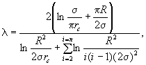 Пример расчета Приняв R = 2,5 м, L = 5 м, r = 50 мм, t = 100 м, определив R0 = 2,5 м, Re = 200 м и по табл. 6 J = 0,456, после подстановки в формулу (76) находим