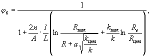 при r ≤ x ≤ R0. Остаточный относительный напор φb на внешнем контуре обделки и в точках b, равноотстоящих от двух соседних дрен, будет иметь максимальное значение. Для определения его величины по формуле (119) вместо x следует подставить R0. 2°. Полагаем, что R0 ≥ Rцел - R. (120) Введем обозначение: R3 = Rцел - R. (121) Для расчета расхода и относительных напоров имеем следующие формулы [Л. 119]: