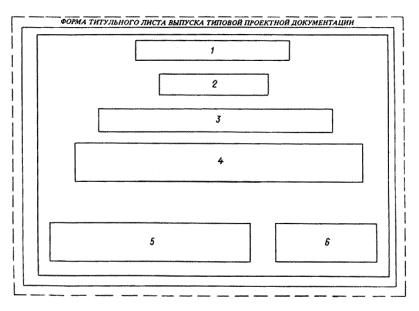 5.6. Титульный лист выполняют по форме 6: поля 1, 2, 3 и 4 заполняют в соответствии с п. 5.2; поле 5 - сокращенное наименование организации, разработавшей типовую проектную документацию, должности, подписи и фамилии: руководителя или его заместителя (главного инженера) организации-разработчика, руководителя подразделения-разработчика, главного инженера проекта. При разработке проектной документации несколькими организациями на поле 5 приводят также наименование организаций-соисполнителей и подписи указанных должностных лиц этих организаций. Если соисполнителем является научно-исследовательская организация, то вместо главного инженера (архитектора) проекта титульный лист подписывает ответственный исполнитель соответствующего подразделения этой организации с указанием его должности; поле 6 - сведения об утверждении типовой проектной документации. Пример выполнения титульного листа рабочих чертежей изделий приведен в справочном приложении 9. 5.7. Документы, входящие в выпуск, должны иметь подписи, отражающие характер работы, выполненной лицом, подписавшим документ («Разработал», «Проверил», «Рассчитал» и т.д.). Обязательными являются подписи разработчика и нормоконтролера. 5.8. Содержание выпуска выполняют по форме 7. Код и порядковый номер документу не присваиваются. 5.9. В выпуск включают, как правило, не менее 15 и не более 75 листов формата А2, 150 листов формата А3, 250 листов формата А4. Не допускается включение в выпуск листов разных форматов. 5.10. Все листы типовой проектной документации, начиная с титульного, входящие в выпуск, должны иметь сквозную нумерацию страниц. Номер страницы на титульном листе не проставляют. Номер последней страницы обводят кружком.