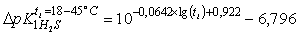 при температуре выше 25°С поправки Формула (17) рассчитана на вычисление в диапазоне температур ti = 18 - 45°C, а соотношение (18) в диапазоне ti = 0 - 18°С. Таблица 6 Температурные поправки для нахождения величин pK(ti°С)1H2S