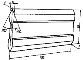 1 - лезвие скребка R 0,25 Рисунок 2 - Скребок Скребок необходимо периодически проверять на отсутствие повреждений (износ или искривление). Не допускается использовать скребок, если обнаружены повреждения. Примечание - Верхняя поверхность измерительной плиты может быть использована для проверки скребка при условии, что она сама не повреждена. Скребок пригоден к работе, если при наложении лезвия скребка перпендикулярно к измерительной поверхности плиты и небольшом отклонении от этого положения не обнаруживается просвет между кромкой лезвия и поверхностью плиты на фоне сильного источника света, установленного за прибором. Проверку повторяют при повороте скребка на 180°. Скребок должен храниться в коробке, обитой изнутри вельветом или другим мягким материалом. 5. Отбор пробОтбирают среднюю пробу материала по ГОСТ 9980.2. Контроль и подготовка образца для испытаний - по ГОСТ 9980.2. 6. Проведение испытания6.1. Проводят предварительное испытание для выбора типа прибора, наиболее подходящего для определения степени перетира испытуемого образца (таблица 1 и 6.5, примечание). Это предварительное определение не учитывают в результатах испытаний. Испытание проводят параллельно на трех образцах. Испытание проводят при температуре (23 ±2)°С, если другие условия не оговорены. 6.2. Чистый и сухой прибор (4.1) устанавливают на гладкую горизонтальную поверхность. 6.3. Помещают образец испытуемого материала в количестве, достаточном для заполнения всего паза, в глубокий конец паза так, чтобы он несколько переливался через края паза, избегая при этом попадания в образец пузырьков воздуха. 6.4. Берут скребок (4.2), зажав его между большим и остальными пальцами обеих рук, и устанавливают лезвие перпендикулярно к поверхности прибора за самым глубоким концом паза, при этом длина скребка должна быть параллельна ширине прибора. С небольшим нажимом скребок перемещают под углом 90° по измерительной поверхности плиты от максимальной глубины паза за нуль с равномерной скоростью в течение 1-2с, при этом паз должен быть полностью заполнен образцом для испытаний, а избыток удален. Примечание - Если вязкость образца такова, что не образуется гладкая поверхность, то необходимо добавить в него минимальное количество разбавителя или пленкообразователя, перемешать и повторить испытания. Каждое разбавление должно быть отражено в протоколе испытаний. В некоторых случаях разбавление может привести к флокуляции, что влияет на степень перетира. Предельно допустимые отклонения между параллельными определениями приведены в таблице 2. Таблица 2 В микрометрах