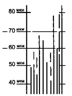 Рисунок 5 - Графическое изображение оценки результатов (штрихи); результат - 60 мкм 7. Обработка результатовЗа результат испытаний принимают среднеарифметическое значение трех параллельных определений с точностью по 6.6, соответствующих глубине паза прибора в микрометрах, при котором отдельные твердые частицы легко различимы. Результаты, выраженные в микрометрах, округляют до целого числа. 8. Точность8.1. Предел повторяемости результатов r Предел повторяемости результатов r - это значение, ниже которого будет находиться абсолютное значение разности между результатами двух отдельных испытаний, каждый из которых является средним значением результатов трех параллельных испытаний, выполненных на идентичном материале одним оператором в одной лаборатории в течение короткого периода времени по одному стандартизованному методу. В настоящем стандарте предел повторяемости результатов г с вероятностью 95 % равен 10 % диапазона шкалы. 8.2. Предел воспроизводимости результатов R Предел воспроизводимости результатов R - это значение, ниже которого предположительно будет находиться абсолютное значение разности между результатами двух испытаний, каждый из которых является средним значением результатов трех параллельных испытаний, полученных на идентичном материале операторами в различных лабораториях по одному стандартизованному методу. В настоящем стандарте предел воспроизводимости результатов R с вероятностью 95 % равен 20 % диапазона шкалы. Примечание - Пределы повторяемости и воспроизводимости, приведенные в 8.1 и 8.2, не относятся к диапазону определений от 90 до 150 мкм и к оценке степени перетира, определяемой по границе начала штриха. 9. Протокол испытанияПротокол испытания должен содержать: a) информацию, необходимую для идентификации испытуемого материала; b) ссылку на настоящий стандарт; c) указание о том, какой прибор был использован; d) подробности проведения разбавления (6.5); e) результат испытания, выраженный в микрометрах, как указано в разделе 7; f) любое отклонение от заданного метода (было ли оно согласовано или др.); g) дату испытания; h) способ оценки результатов испытания (по частицам или штрихам). Приложение