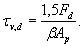 где Fd - вертикальная опорная реакция от расчетной вертикальной нагрузки; А1=:а1b1 - площадь стального листа, армирующего опорную часть; dа, db - расчетное перемещение сдвига опорной части по направлениям сторон а и b соответственно. При расчете площади наличие сквозных технологических отверстий в арматуре не учитывают (см. Пример Д.4). 7.2.2. Касательные напряжения, возникающие в резине опорной части от расчетных нагрузок, должны удовлетворять условию td = tv,d +th,d +tu,d £ Rt (10) где tv,d; th,d - касательные напряжения соответственно от расчетной вертикальной и горизонтальной нагрузок; tu,d - касательные напряжения, возникающие в результате поворота верхней плоскости опорной части относительно нижней от расчетных нагрузок и воздействий (см. Пример Д.5). 7.2.3. Касательные напряжения от расчетной вертикальной нагрузки следует определять по формуле